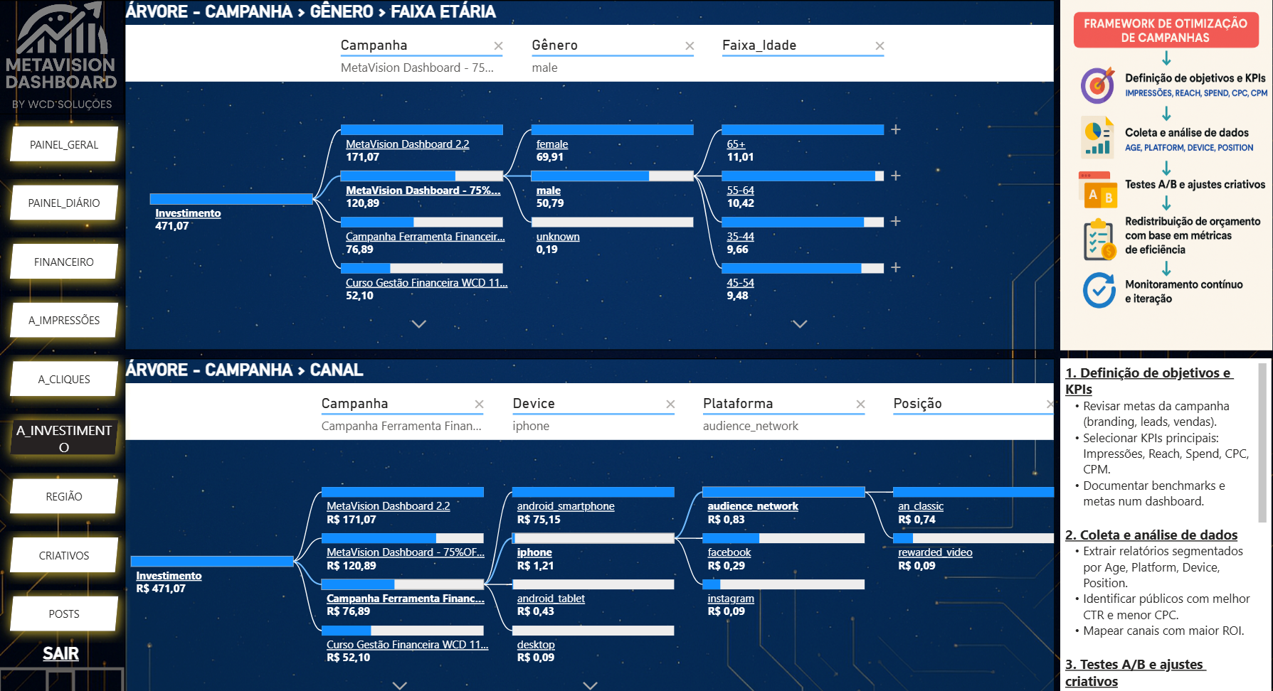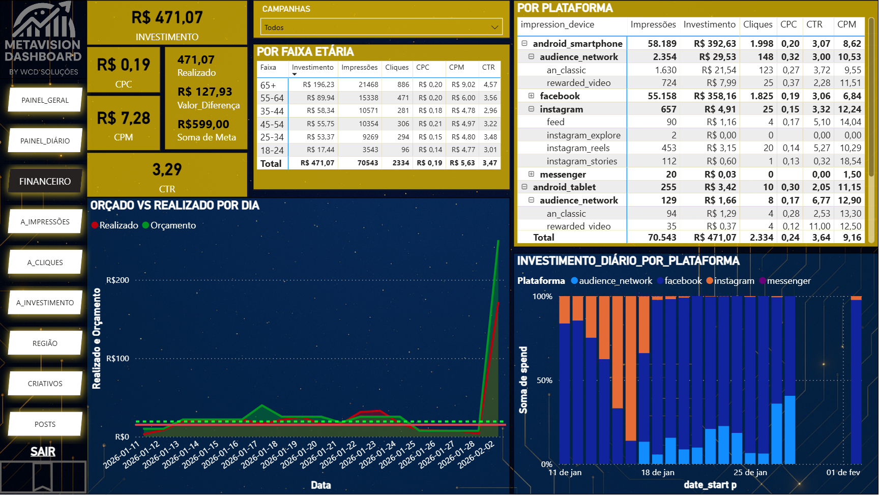O MetaVision redefine a análise de campanhas. Sem simulações, apenas a realidade nua e crua dos seus dados transformada em decisão.